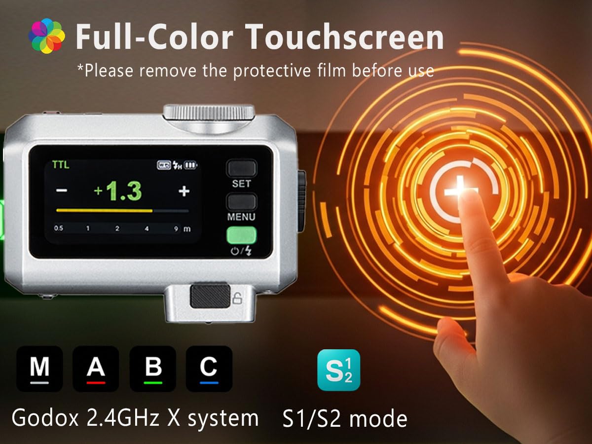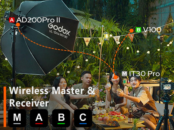 Unlock creative freedom with the Godox iT30 pro for Sony. Its integrated Godox 2.4GHz X-system functions as both a master and receiver, making complex multi-light setups effortless. Harness pro-level control with 1/8000s High-Speed Sync, curtain sync modes, and more. For ultimate precision, the 'S' version adds 1/80000s global shutter sync for Sony cameras compatible, pushing your creative boundaries.